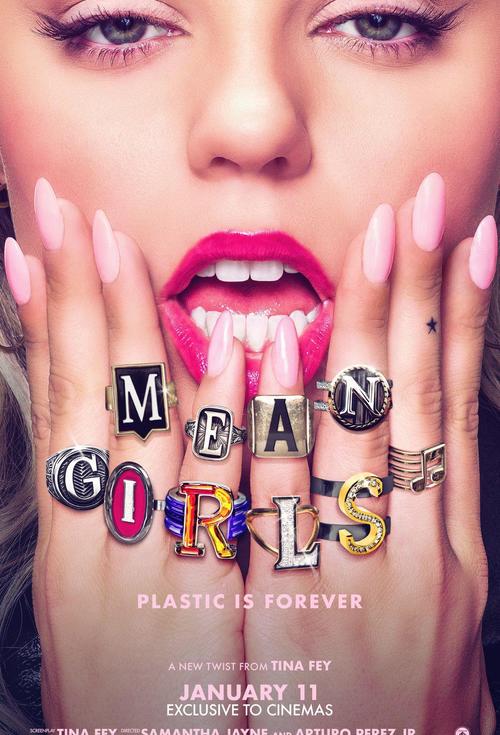 From the comedic mind of Tina Fey comes a new twist on the modern classic, MEAN GIRLS. New student Cady Heron (Angourie Rice) is welcomed into the top of the social food chain by the elite group of popular girls called “The Plastics,” ruled by the conniving queen bee Regina George (Reneé Rapp) and her minions Gretchen (Bebe Wood) and Karen (Avantika). However, when Cady makes the major misstep of falling for Regina’s ex-boyfriend Aaron Samuels (Christopher Briney), she finds herself prey in Regina’s crosshairs. As Cady sets to take down the group’s apex predator with the help of her outcast friends Janis (Auli’i Cravalho) and Damian (Jaquel Spivey), she must learn how to stay true to herself while navigating the most cutthroat jungle of all: high school.